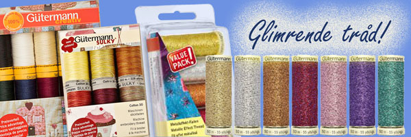 | Det glimrer og glitrer i Gütermanns trådpakke som øjet uvægerligt fanger. De giver denne effekt i sytøjet så vel som strikketøjet. Gütermanns bomuldstråd til håndquilt i forskellige nyttige farver er næsten uundværlig i patchwork-sammenhæng. Og hvad med det smukke flerfarvede trådsæt! Her er de så, de 3 herlige trådpakker: /traad/gutermann.html | |||