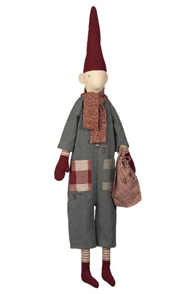 Adventskalendernisse, dreng, med 4 lommer til adventsgaverne. Ca. 107 cm.
