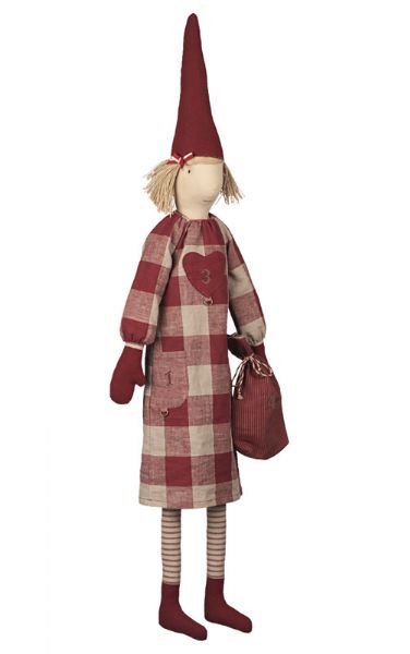 Adventskalendernisse, pige, med 4 lommer til adventsgaver. Ca. 107 cm.