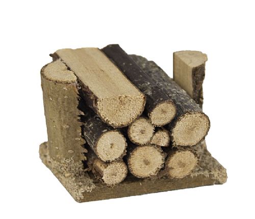 Lille brændestabel til brændeovnen. Ca. 4 x 3 x 3 cm. Vælg stabel.