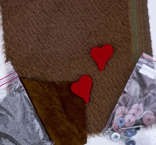 Kit til lille bamse med hjertepynt på ca. 13 cm. Kittet indeholder dansk opskrift og mønster samt pels, potestof, stålgranulat, øjne, ledsæt og 2 røde filthjerter. (Fyld medfølger ikke). Vælg farve.