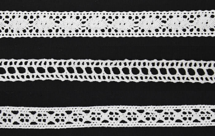 Hvide blondebånd i forskellige mønstre og bredde. Sælges i 1 m enheder. Vælg bånd.