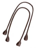 Beskrivelse Runde hanke i mørk brun læderlook til at sy på tasken. Længde ca. 60 cm.