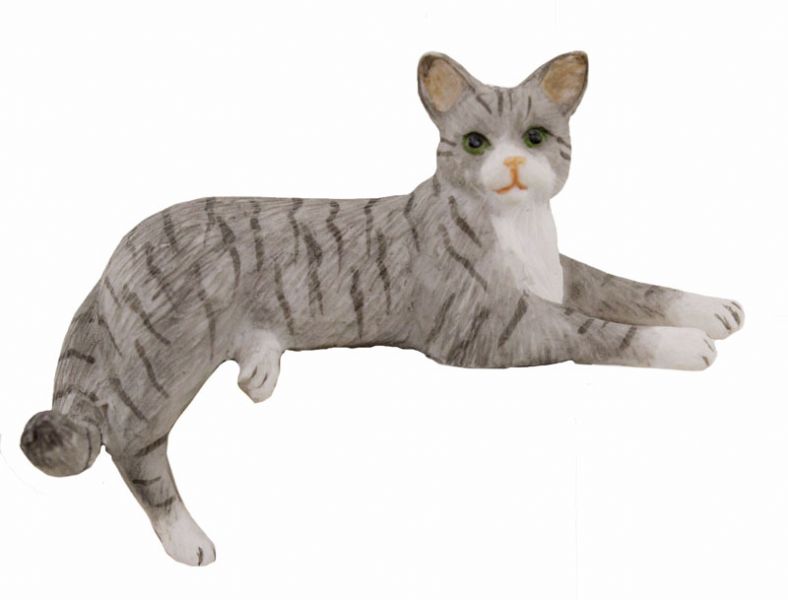 Lille kat som kan ligge på en bænk, en trappe eller lignende. Måler ca. L 5 cm.