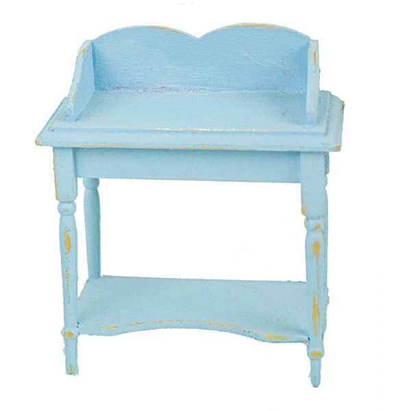 Beskrivelse Lyseblåt servantebord i træ. Mål ca. H 8 cm, L 7 cm, D 3,8 cm.