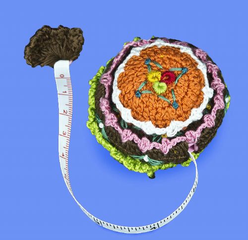 Målebånd fra Lantern moon har sjove hæklede oprulnings-etuier på ca. 6 cm i omkreds. De forestiller dyr, kager oa.