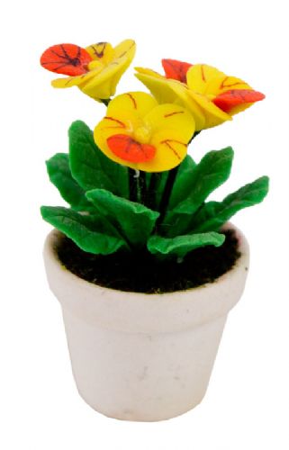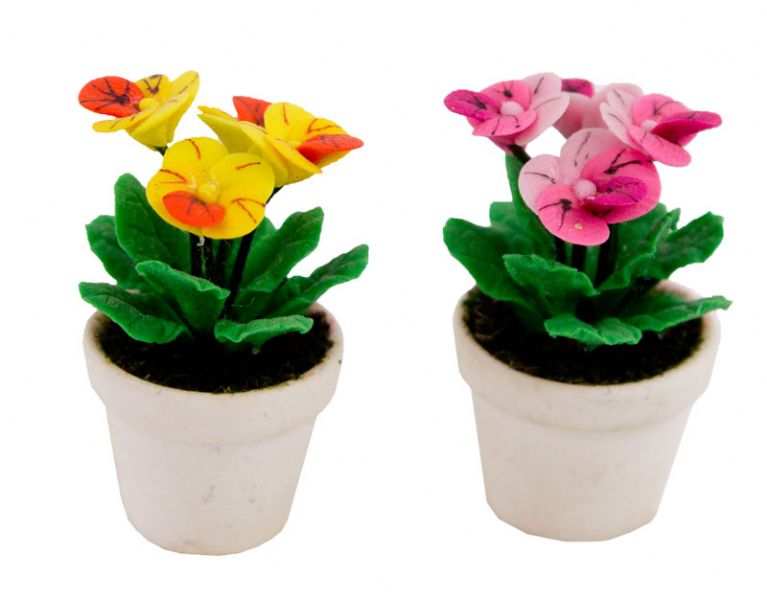 Potteplante med blomster. Mål ca. Ø 2 cm, H 3 cm.Vælg gul eller pink blomster.