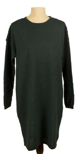 Kjole i rillestrik med glatstrikkede lange ærmer. Rund hals. Modellen er lige op-og-ned. 100% Øko-tex ekstra fin merineuld. Længde fra skulder og ned i str. 2 ca. 90 cm. Vælg Farve og størrelse.