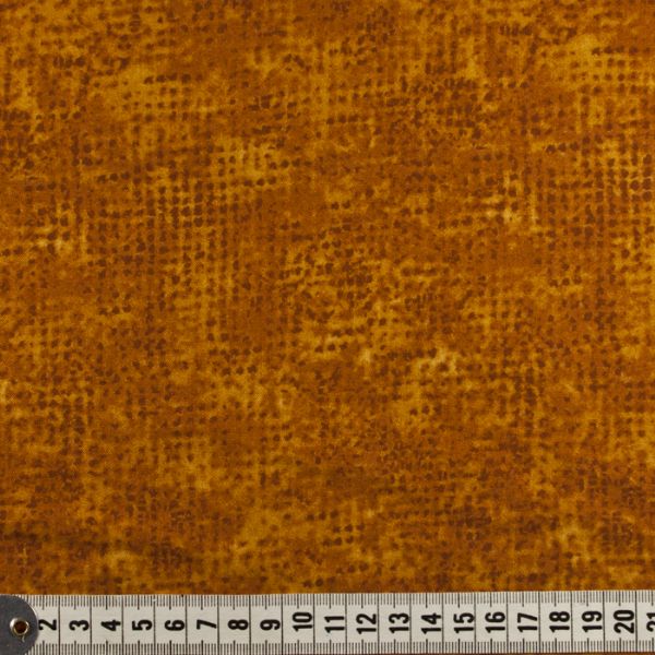 Meleret orange med små skarpe mørke pletter.Stoffet er 110 cm bredt og sælges i 50 cm's enheder.