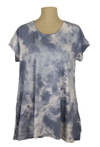 Håndkoloreret A-formet t-shirt med lille kort ærme i 92% Tencel, 8% elastan. Længde fra skulder og ned i str. 1 ca. 70 cm. Vælg størrelse.