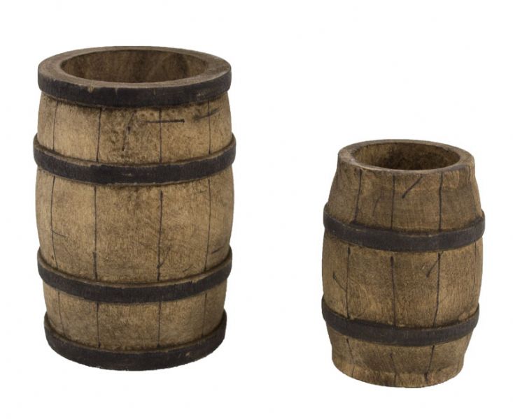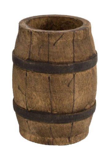 Trætønde. Stor tønde måler ca. Ø 3,8 cm, H 5,8 cm. Lille tønde måler ca. Ø 3 cm, H 4,4 cm. Vælg tønde.